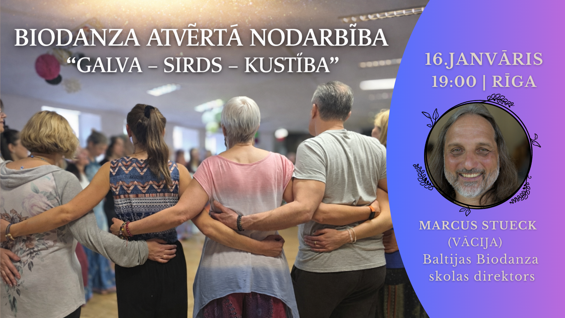 You are warmly invited to join the open Biodanza session "Head - Heart - Action", led by Prof. Dr. habil. Marcus Stueck, Director of the Baltic Biodanza School (Germany).